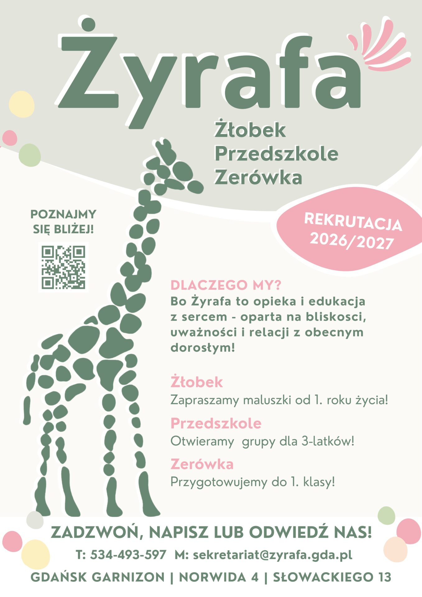 Najlepsze miejsce dla małego człowieka. Przede wszystkim z bliskościowym podejściem do dziecka, z dbałością o jego emocje i uczucia. Miejsce, w którym dziecko może rozwijać się na każdej płaszczyźnie, z bogatą ofertą zajęć dodatkowych oraz interesującymi zajęciami codziennymi. Cudowne Panie, które dbają o małe Żyrafki codziennie wspierając je w swoich działaniach. Polecamy ❤️🦒